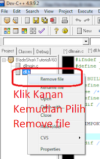 Kemudian Remove file dll.h cara nya klik kanan Pilih remove Nanti ada muncul save pilih aja No Bisa di liat di Gambar 2: